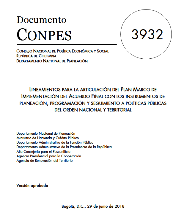 29/06/2018 - Lineamientos para la articulación del Plan Marco de Implementación del Acuerdo Final con los instrumentos de planeación, programación y seguimiento a políticas públicas del orden nacional y territorial.