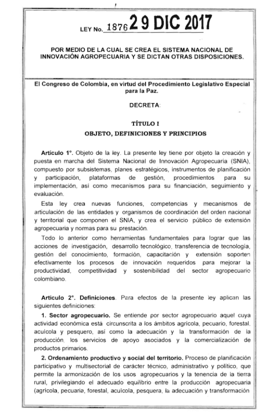 "Por medio de la cual se crea el Sistema Nacional de Innovación Agropecuaria y se dictan otras disposiciones"